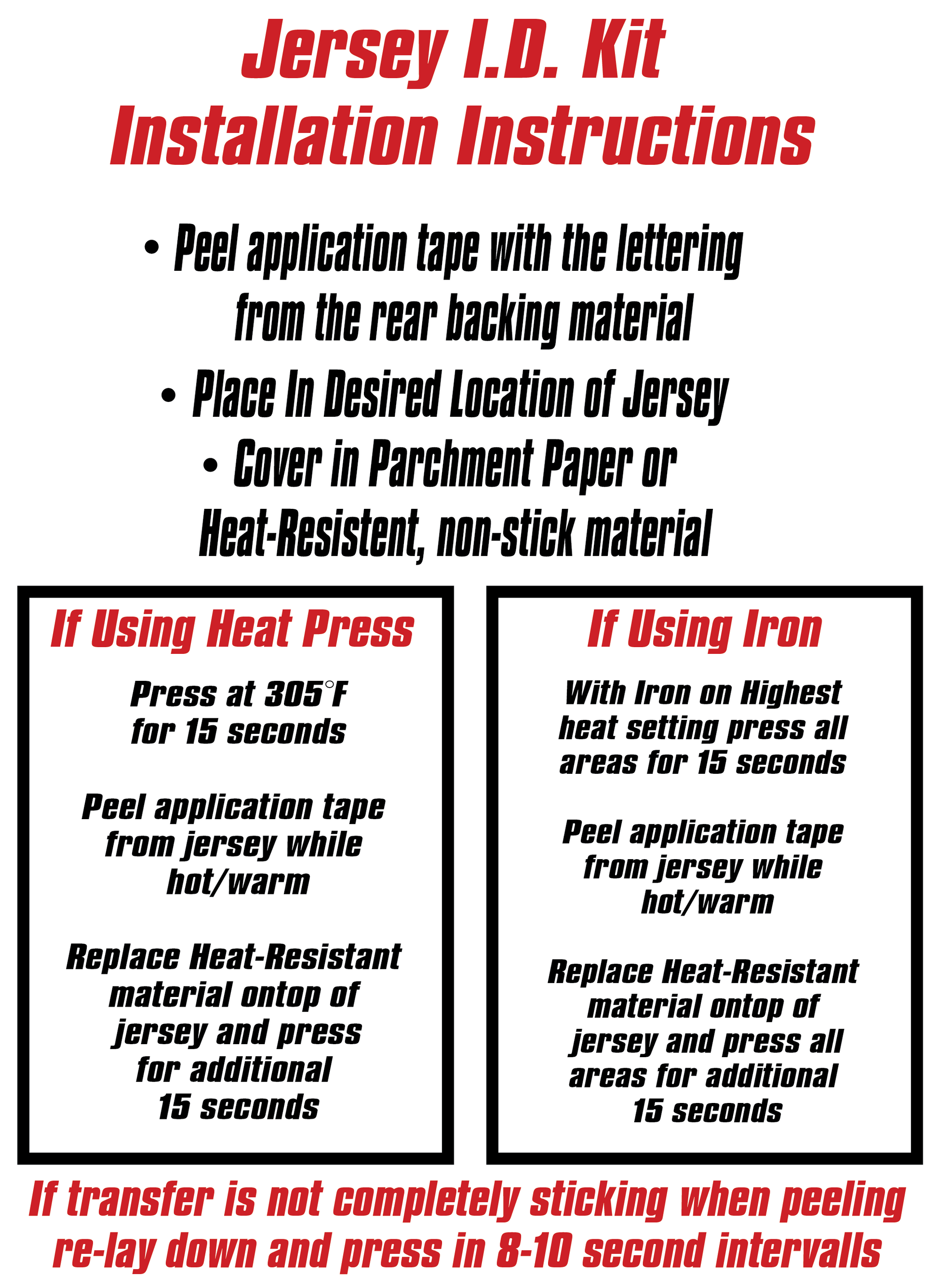 Includes - 1 Rear jersey heat transfer kit with application tape pre-installed.